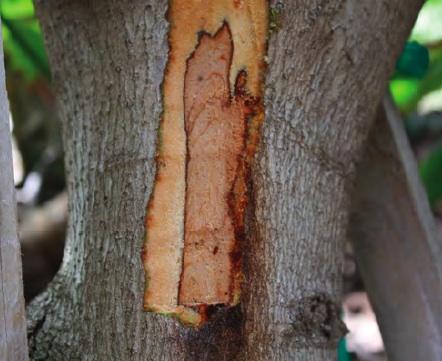 - Affected trees show a gradual loss of vigor and decline of the canopy. Foliar symptoms are similar to those caused by Phytophthora root rot.