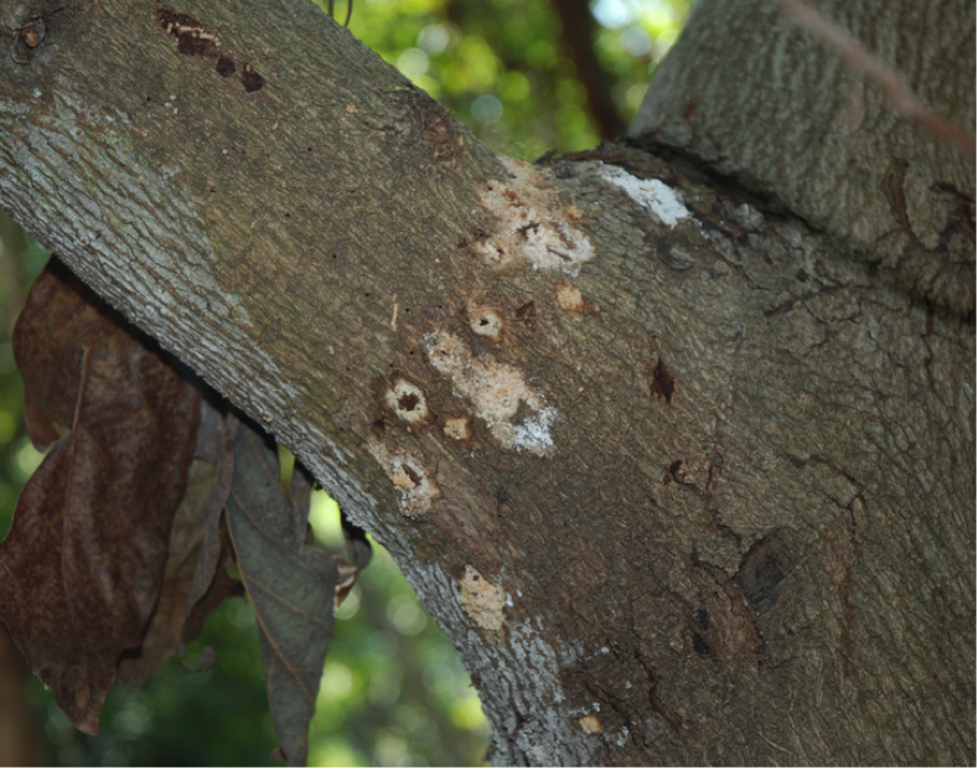 Scouting of all groves also remains an important activity. When there is a new infestation the beetle often times begins to settle in the crotch area at the base of tree limbs. Currently a treatment of pyrethrin on and around the crotch or scaffold is recommended for some possible control (Reuben Hofshi).