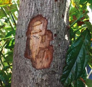 - Affected trees also may show sawdust protruding from the stem, produced by the beetle as they bore into the wood.