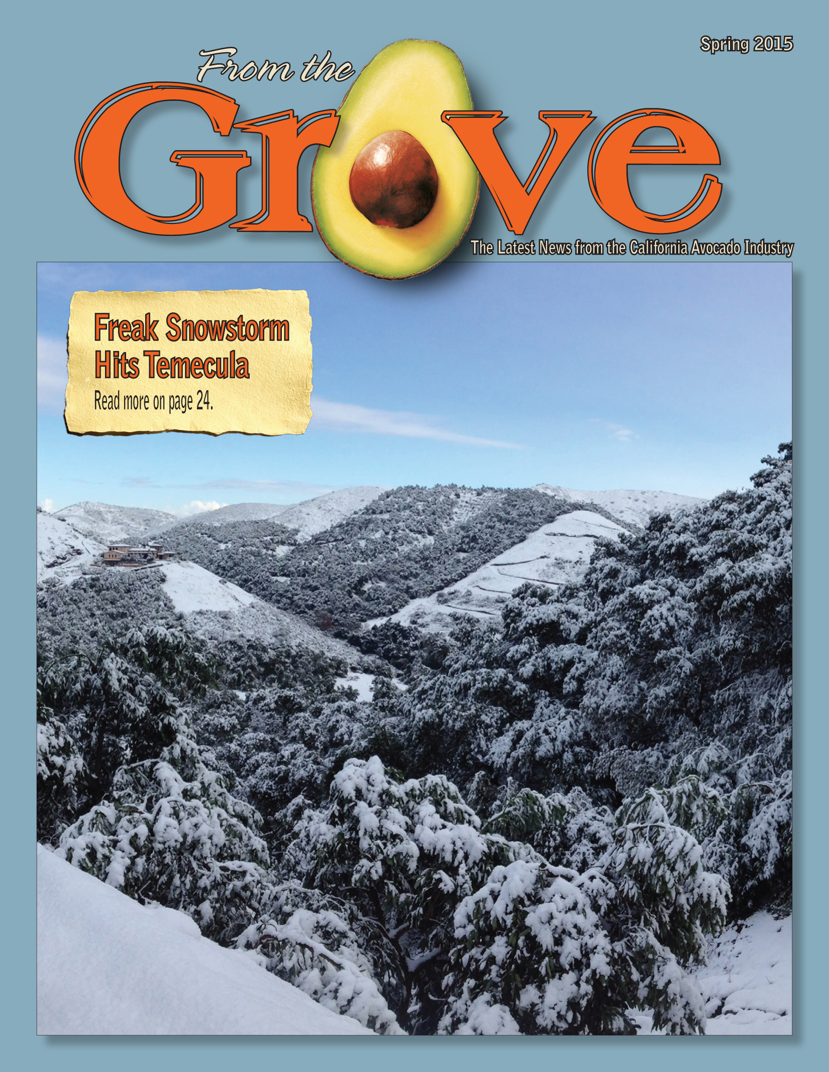 Image In This Issue Message from the President Chairman's Report PSHB Activities Continue to Ramp Up Early Season Retailer Promotions and Activities Spring Avocado Management Considerations Fruit Logistica Provides Unique Opportunity for Connections Freak Snowstorm Hits Temecula CaliforniaAvocado.com, CAC's Consumer Website, Relaunched CAC and FPFC: 50 Years of Collaboration EGAP Holds the Line, Avoids Ag Water Rate Increases 2013-14 CAC Annual Report Available Online PSHB Research Update Advances in Salinity Tolerance and Phytophthora Detection Size Picking Helps Season Get Off to Good Start Jalisco Could Soon Be Shipping to the U.S. SubscribeCalifornia avocado industry members interested in subscribing to From the Grove should contact April Aymami, CAC Industry Affairs DirectorContact April