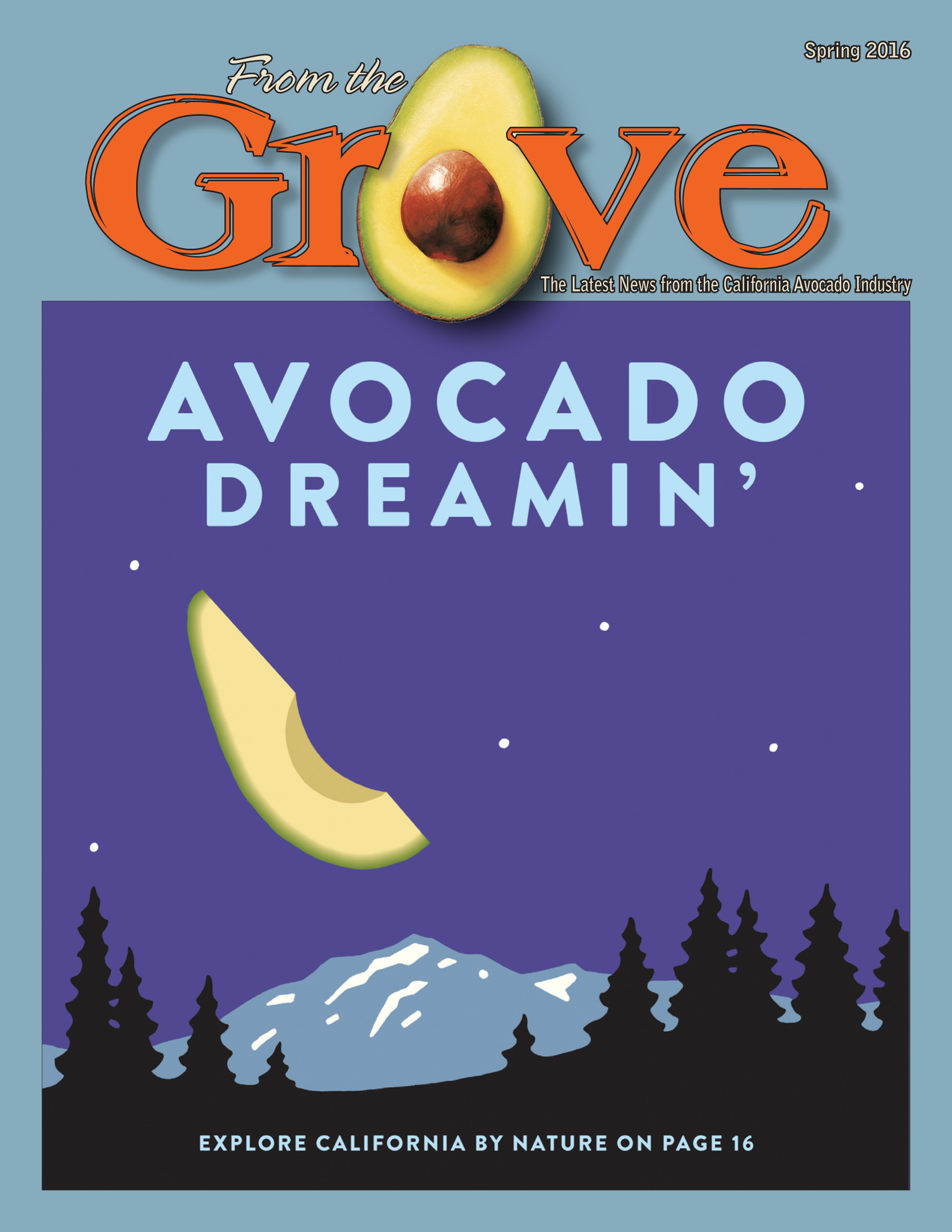 Image In This Issue Trade Advertising: An Integral Part of the Commission Effort Market Should Improve As Season Progresses Avocado Tree Decline: What's Happening to Our Trees? Commission Hosts EPA Officials in SHB Infested Areas; Secures Additional Research Funding The Food Safety Modernization Act: How Does It Impact You? Drought Management Conference Targets Tree and Vine Crops The 2015-2020 Dietary Guidelines World Avocado Organization Launches; Eyes European Promotions Trade Marketing Team Prepares for California Avocado Season Message from the President 2014-15 CAC Annual Report Now Online From Ornamentals to Avocados: The Journey of One Grower Little and Often: Key to Maximizing Fertilizer Use in Avocado California by Nature #BigGameAdd: Instant Replay The Complexities of International Trade Chairman's Report SubscribeCalifornia avocado industry members interested in subscribing to From the Grove should contact April Aymami, CAC Industry Affairs DirectorContact April