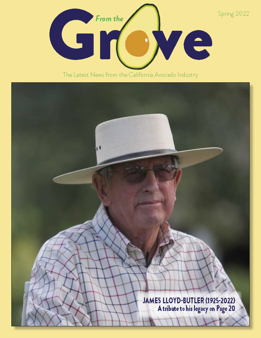 Image In This Issue Chair's Report A Preview of Spring and Summer Marketing Growing Avocados in a Megadrought Cooking Up New Recipe Support A Gentleman Farmer Passes On 2022 Trade Advertising Micropropagation of Avocado in California 2021 California Avocado Tracking Study Highlights The “Sell-In”: An Integral Part of CAC’s Promotional Effort Early Sales Boost California Deal SubscribeCalifornia avocado industry members interested in subscribing to From the Grove should contact April Aymami, CAC Industry Affairs DirectorContact April