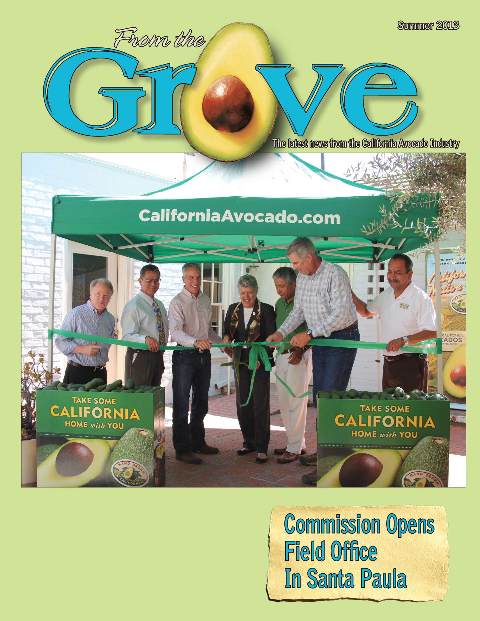 Image In This Issue Better Growing - Avocado Fruit Set, Is it Just a Lottery? Global Perspectives - Columbia Eyeing U.S. Market The Cost of Growing Avocados Commission Hosts Congresswoman Julia Brownley Polyphagous Shot Hole Borer/ Fusarium Dieback Update California AvoTech - Systemic Pesticides Being Evaluated 2013 Mid-Season Crop Update From Your Commission - 2013 CAC General Election Grower Profile - Great Views Led to Avocado Career Message from the President Water Purchase Agreements May Help Secure Rate Relief Wake Up to Breakfast With California Avocados Issues Watch - Immigration Reform Takes Center Stage California Avocados Grow Here ~ A Quick Tour of the New California Avocado Growers Website Behind the Scenes ~ Co-Marketing Promotions CAC Establishes Northern Field Office in Santa Paula Premium Positioning Offers Bright Future for California Avocados Chairman's Report SubscribeCalifornia avocado industry members interested in subscribing to From the Grove should contact April Aymami, CAC Industry Affairs DirectorContact April