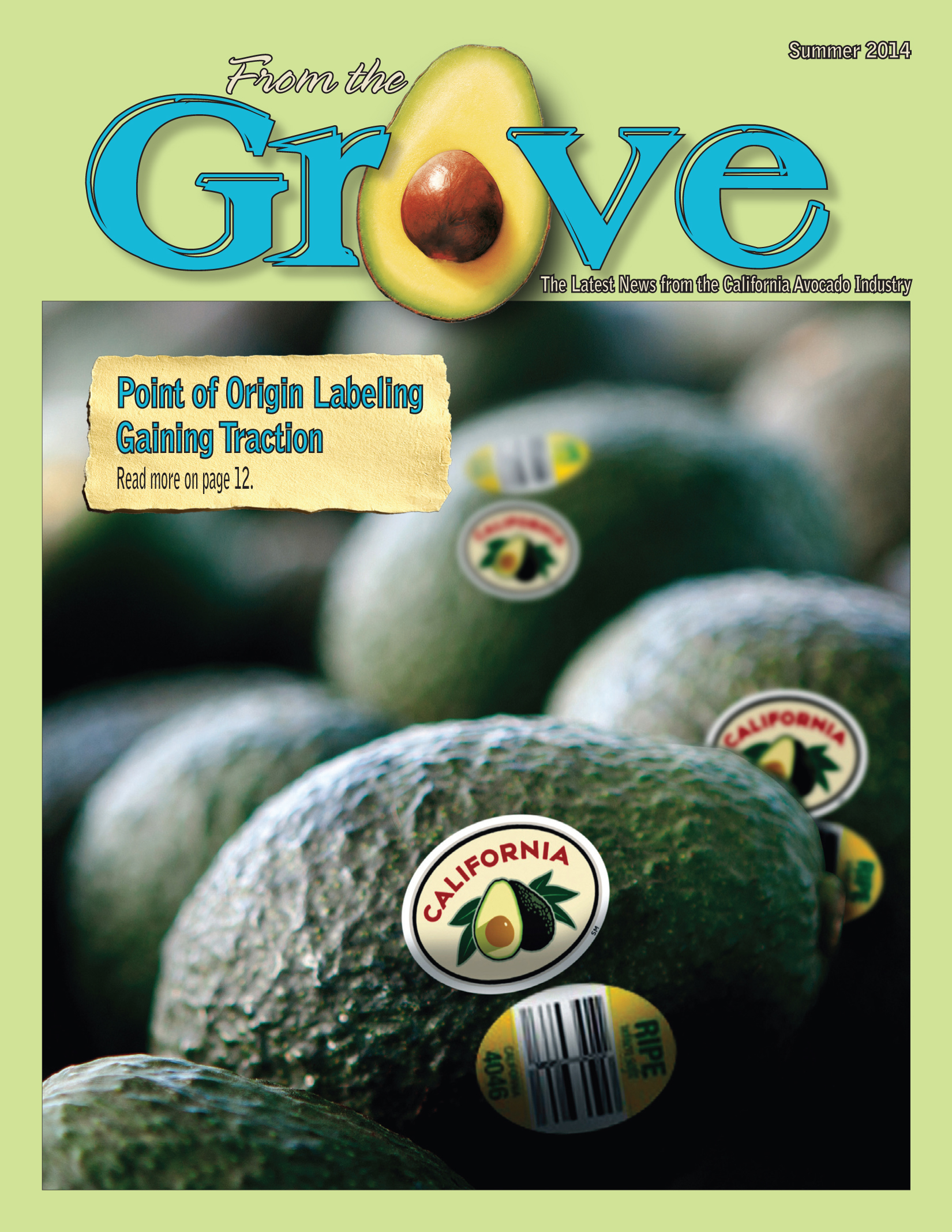 Image In This Issue Grower Profile: David Ross Hawaii Gains Limited Access to Mainland Market PSHB and Fusarium Dieback Update Drought Impacts Feared Short Crop Leads to Strong Market High Density Avocado Production: Could this be the Future for California Growers? CAC 2014 Annual Meetings: Vision 2025 Impact on Programs Explored Determining Water Use Efficiency Integrated Promotion Campaigns Provide Premium Brand Positioning Better Growing: Canopy Management for Avocados Message from the President California Avocado Commission Promotes Avocados for Summer Snacking Commission Questions FDA's Avocado Sampling Assignments CAC Season Opener Activities Point of Origin Labeling Gaining Traction 2013 California Avocado Acreage Inventory Update 2014 Mid-Season Crop Update 2014 CAC General Election Chairman's Report SubscribeCalifornia avocado industry members interested in subscribing to From the Grove should contact April Aymami, CAC Industry Affairs DirectorContact April