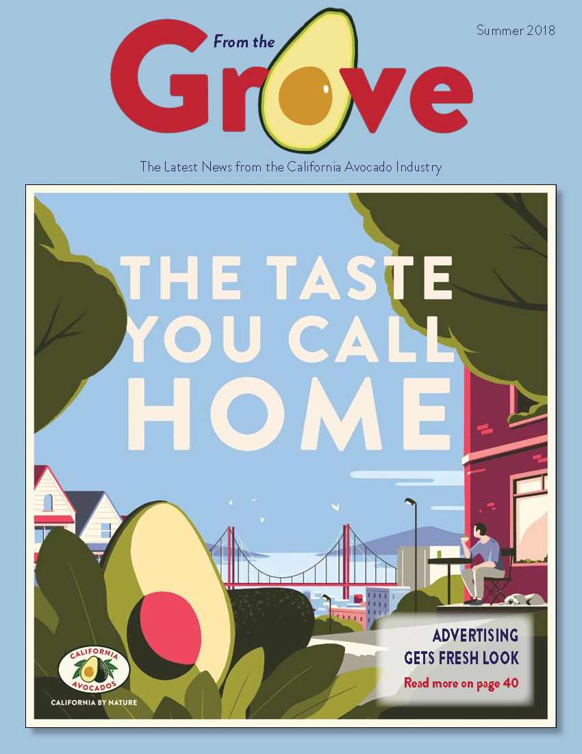 Image In This Issue Message from the President Chairman's Report Sustainability, Produce Safety Rule & International Markets Avocado Decision Support Tools Now Available Engaging with California Avocado Fans at Local Events California Avocado Commission Prepares for the Future Avocados and Education: A Family Tradition Allesbeste Boerdery, Kwekery and Padstal 2017/18 Mid-Season California Avocado Crop Update Using Soil Moisture Sensors to Schedule Avocado Irrigation - First Year Trial Report Fresh Consumer Advertising Campaign for California Avocados Multi-faceted Early Season Campaign Reaches Consumers at Home & on the Go Three Retired Retail Veterans Offer Perspective on the Rise of the Avocado Understanding Avocado Branch Canker ProGibb LV Plus® Plant Growth Regulator to Increase Fruit Size and Yield of Avocados Increased California Volume Expected on Back End SubscribeCalifornia avocado industry members interested in subscribing to From the Grove should contact April Aymami, CAC Industry Affairs DirectorContact April
